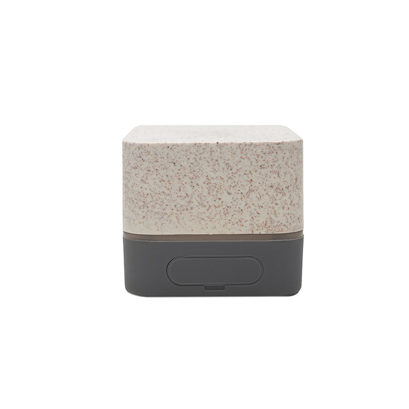 Parlante portátil con tecnología Bluetooth 5.0. Realizado en combinación de PP con Silicona y Wheat Straw, pasta de tallo de trigo, un material sustentable que reduce el consumo de plásticos vírgenes. Su peso es de 116gr, y entre sus características técnicas encontramos: Bateria de 300mAh. Poder del parlante 3W X 1. Frecuencia 200Hz 20KHz. Conexión: 5V 500mA. Distancia de alcance: 10 Metros.Duracion de Bateria a Vol. medio 1,5horas. Medidas: 5,85 x 5,85 x 5,1 cm.