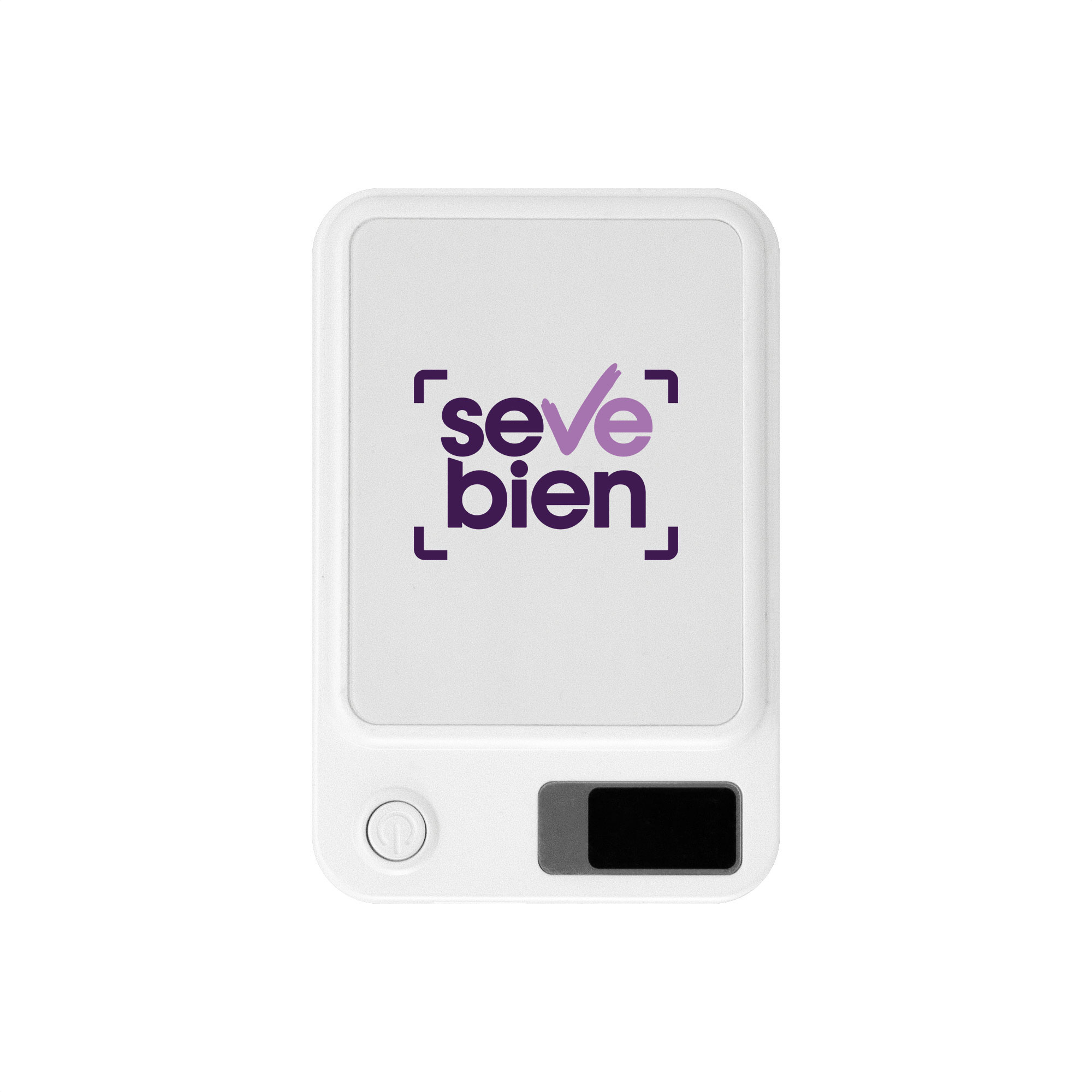 Mantente conectado en todo momento.Power bank inalámbrico con aro magnético. Color blanco mate y brillante en la parte delantera. Posee indicador digital de capacidad. Entrada y salida: 5V 2A. Con 1 puerto de carga y función inalámbrica magnética. Potencia inalámbrica: 5W. Cable de carga USB – C en color blanco. Incluye anillo magnético para pegar en la parte trasera del teléfono móvil. Medidas: 6,4 x 9,8 x 1,5 cm.