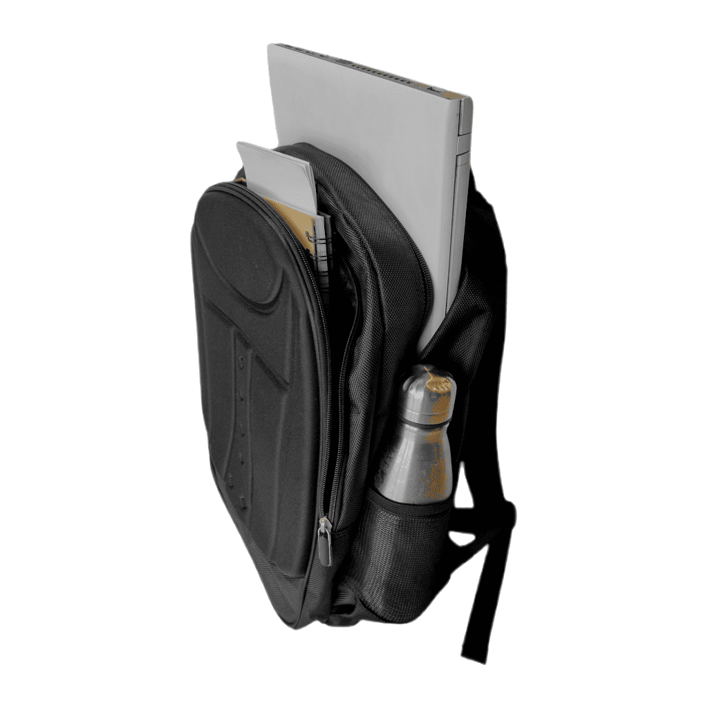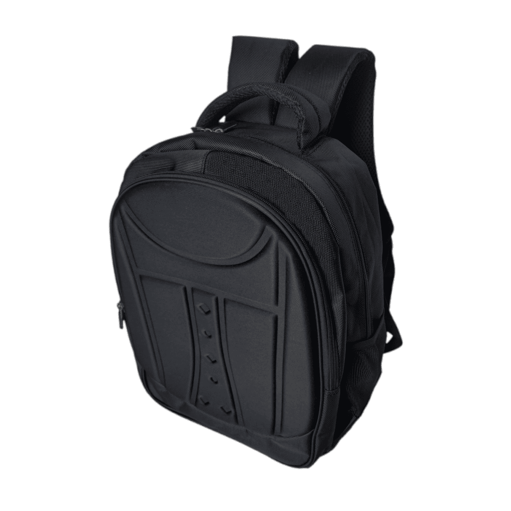 Mochila porta Notebook súper resistente e impermeable. Frente de material termoformado. Presenta dos compartimiento, el primero con un cierre simple con bolsillos porta objetos en su interior, el segundo y principal, con cierre doble que contiene sobre el sector de la espalda el bolsillo porta notebook con sujetador con velcro. Interior forrado y acolchado. Posee dos bolsillos laterales en ripstop. Manija acolchada. Correas acolchadas ajustables. Soporte de espalda anatómico acolchado y reforzado. Correa para el carry on.