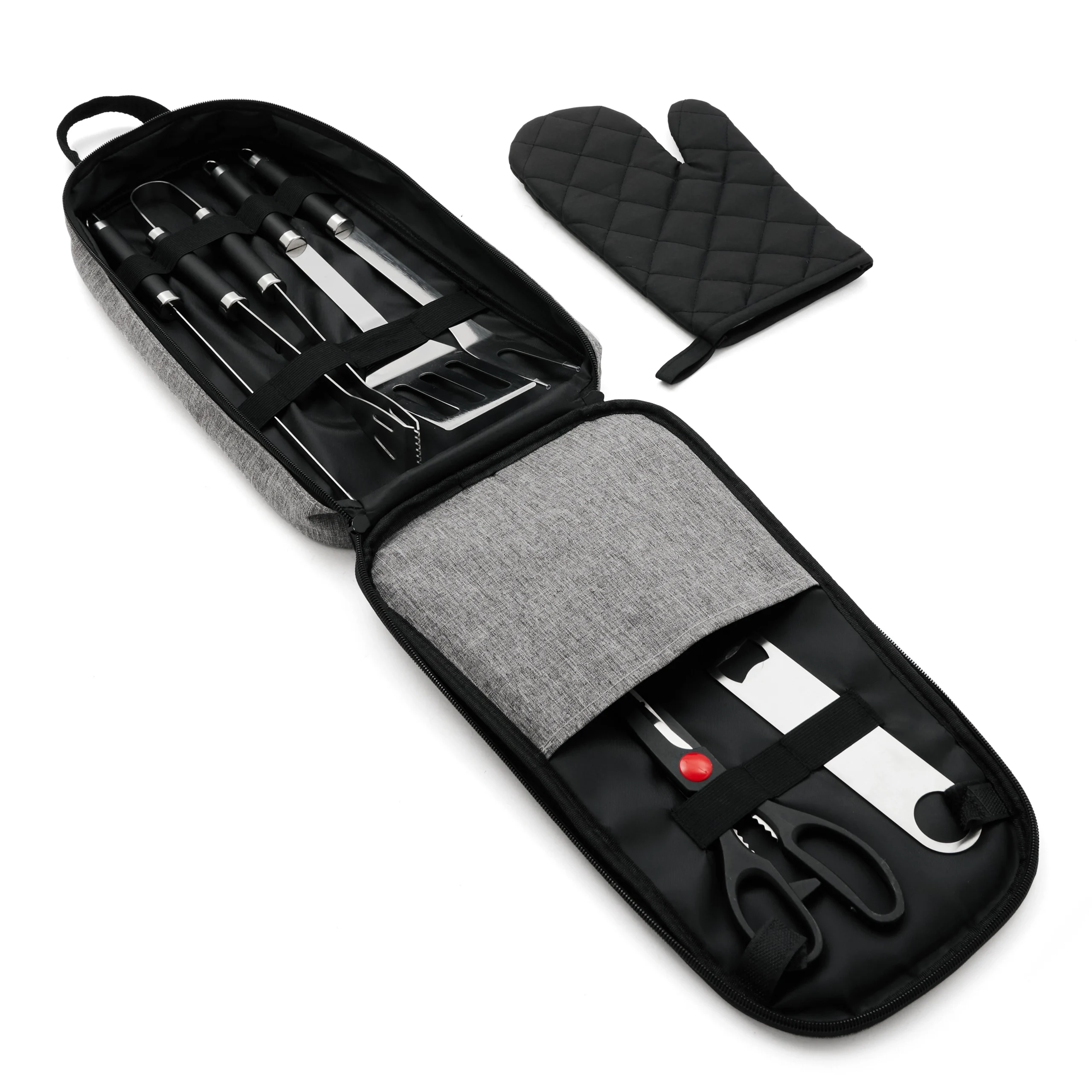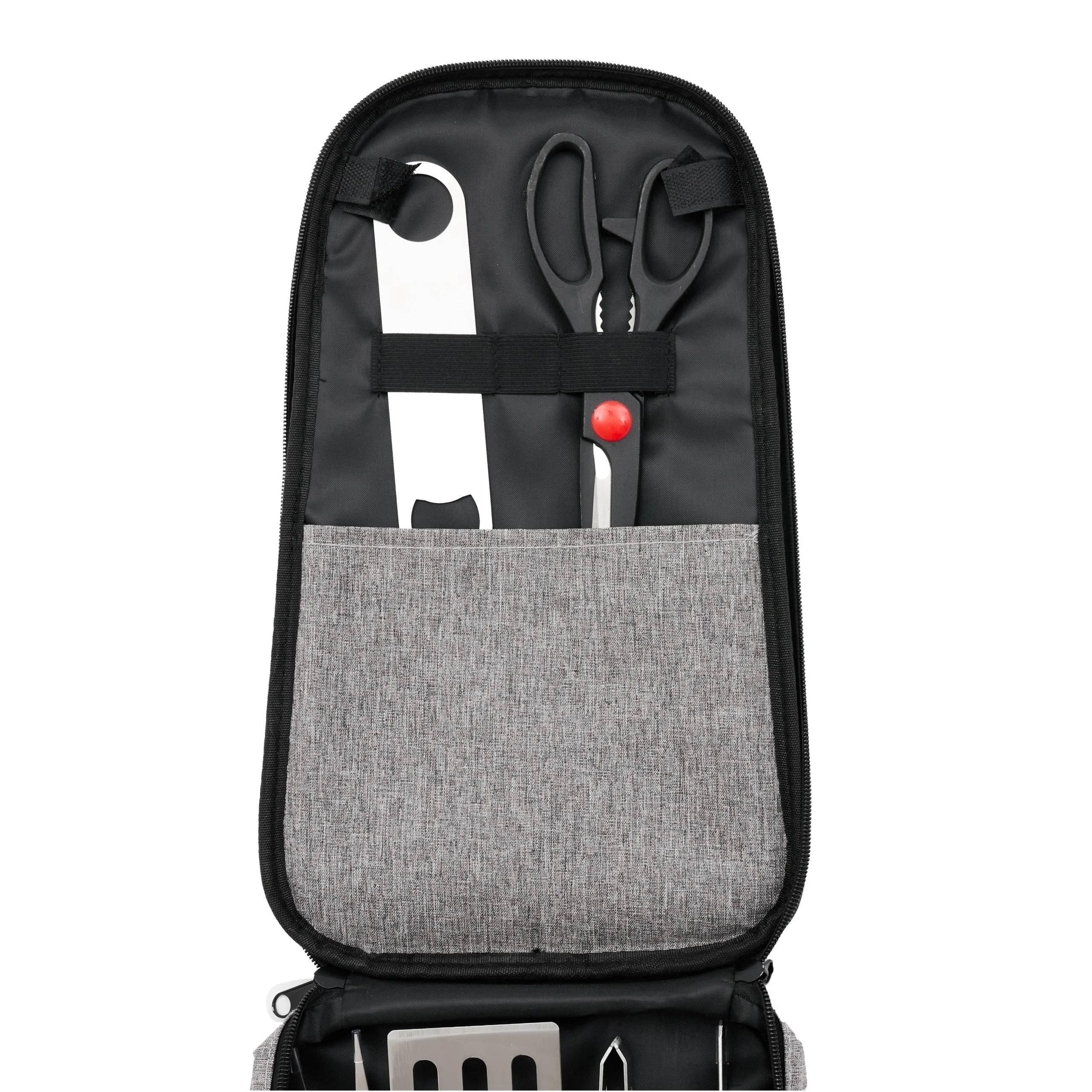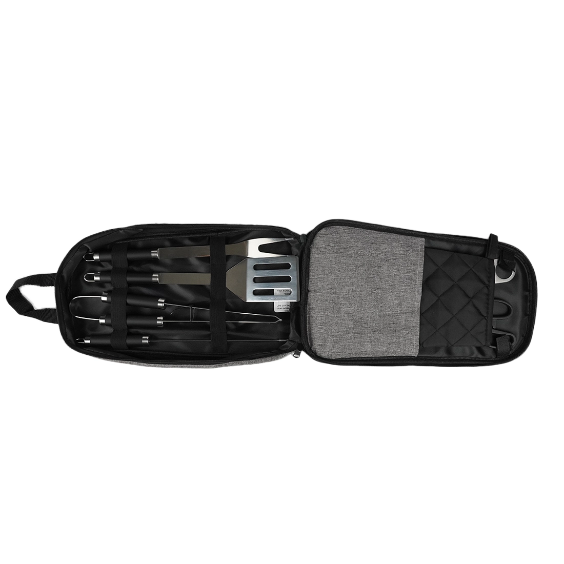 El Set BBQ Fuego es ideal para tus parrilladas y asados. Contiene: tenedor, pinza, espátula, afilador, tijera, guante y destapador abridor de cervezas. Viene presentado en un estuche de poliéster de alta calidad, perfecto para almacenar y transportar tus utensilios. Tahg