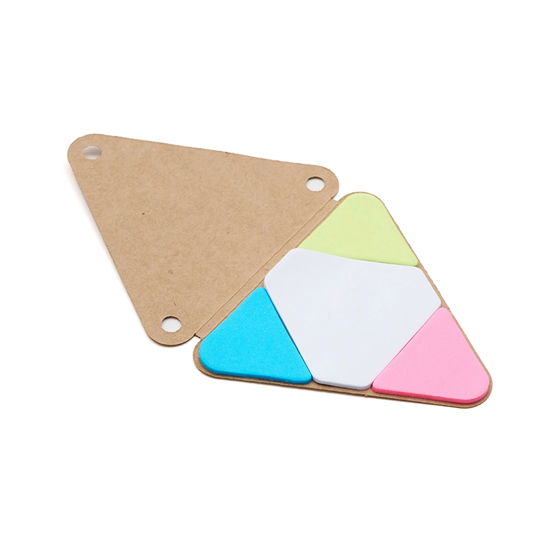 Set de notas adhesivas en forma triangular. Pack de notas auto adhesivas de papel sobre una base de corcho. Cuenta con 4 colores: Blanco, rosa, verde y azul. Ideal para anotar recordatorios o marcar paginas. Tahg