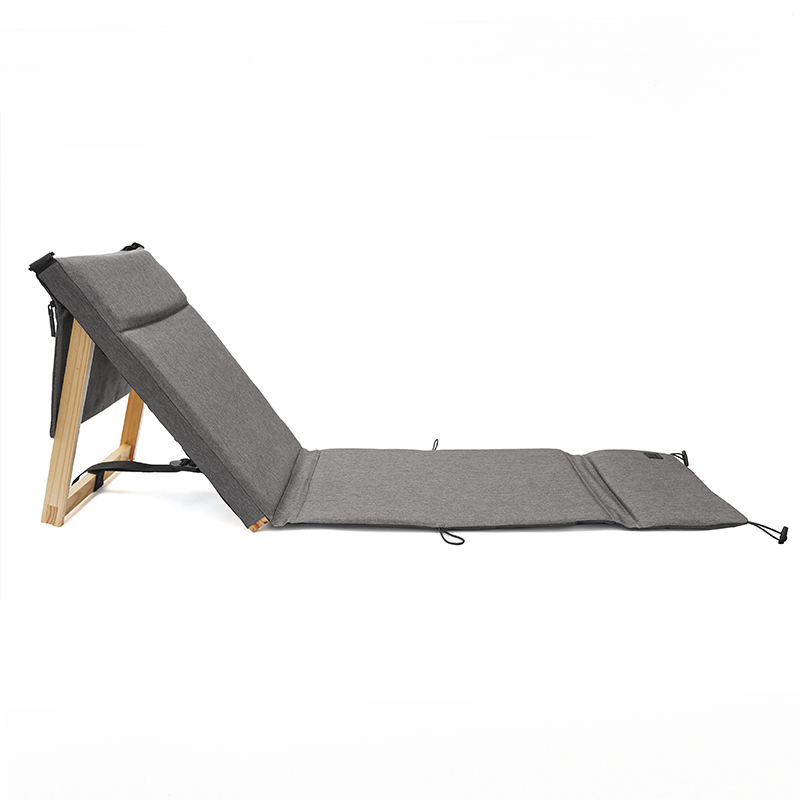 Silla Reposera plegable confeccionada en Polycanvas. El respaldo cuenta con un marco de madera, protegido con Cetol, que permite regular la inclinación, y con un bolsillo con cierre removible, pegado en velcro. También posee una correa regulable para transportarla fácilmente y elásticos en los extremos para cerrarla. Dimensiones desplegada: 137 x 44 cm. Dimensiones cerrada: 56 x 9 cm. Dimensiones bolsillo: 38 x 30 cm. Cardon.