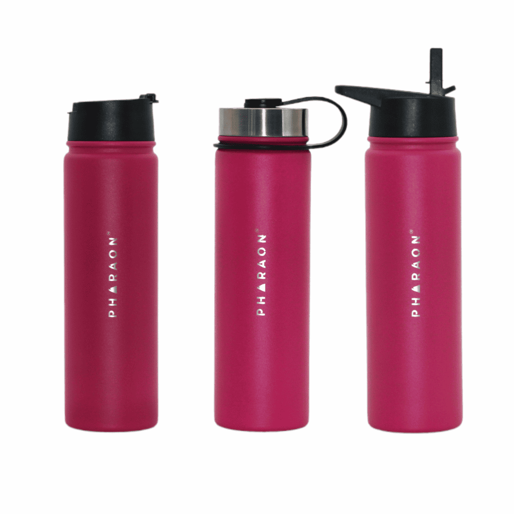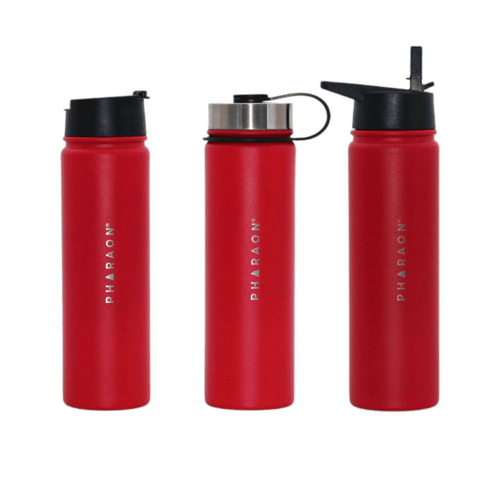 Acero inoxidable con aislamiento al vacío. Doble pared. Sin BPA. A prueba de fugas. Apta para viajes. Incluye 3 tapas. Apto para bebidas frías y calientes.