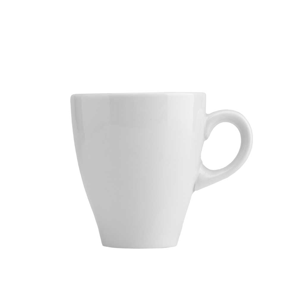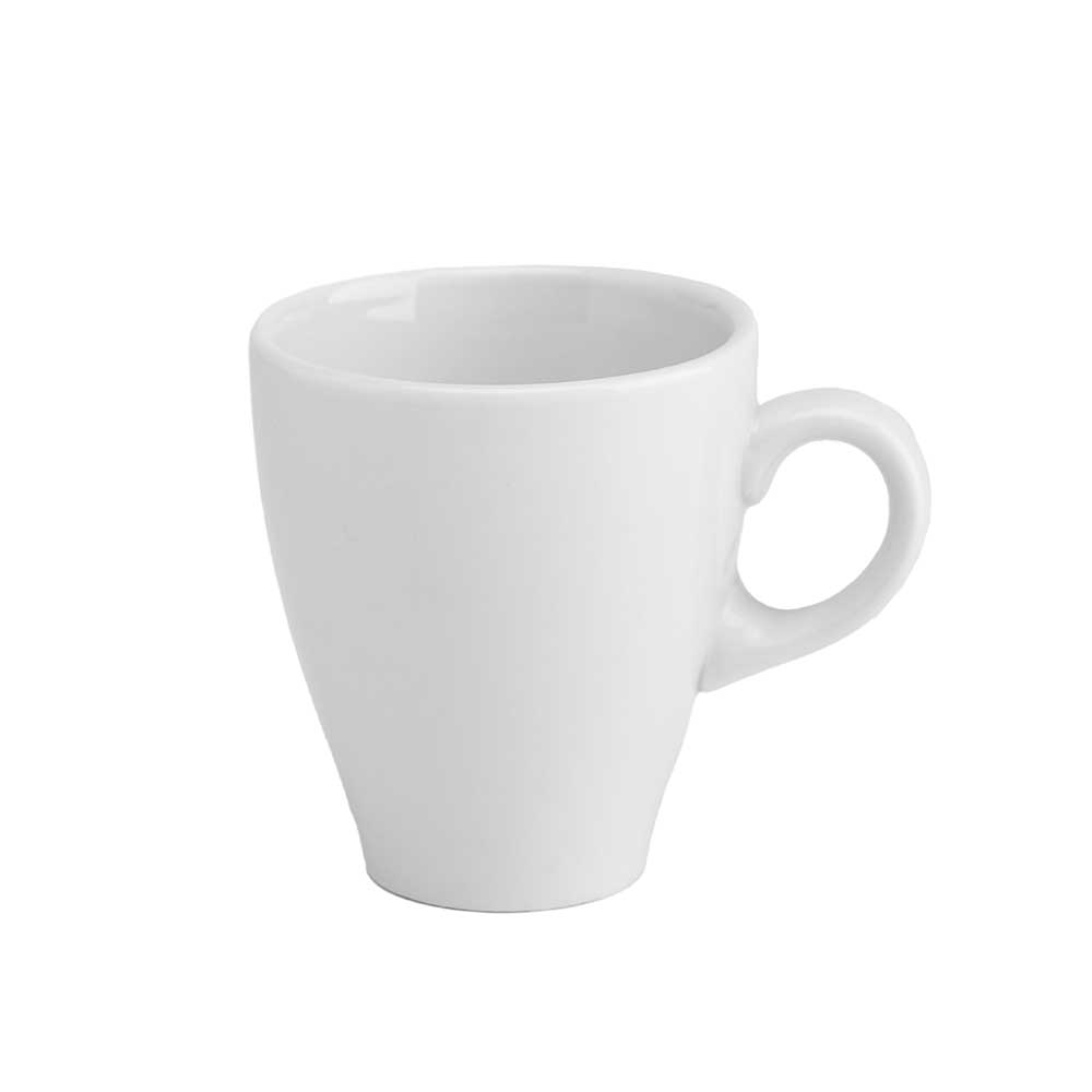 Taza de Porcelana cónica con asa. Resiste altas temperaturas. Capacidad: 100 ml. Medidas: 8 cm x diámetro superior 7 cm x diámetro inferior 4 cm. Producto aprobado por el I.N.A.L. para el contacto con alimentos. Apto para microondas y lavavajillas. Dimensiones de la GiftBox 10x9x9cm. Verbano.